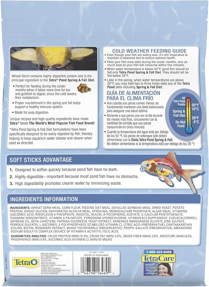 TetraPond Spring And Fall Diet 3.08 Pounds, Pond Fish Food, For Goldfish And Koi, 7 L