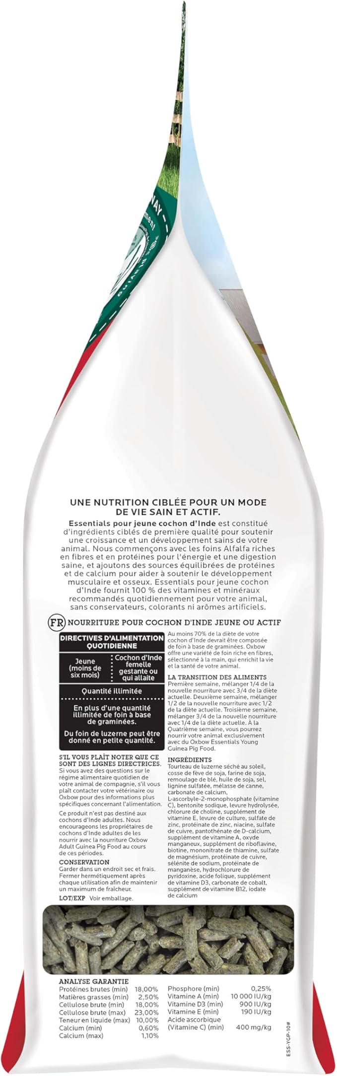 Oxbow Essentials Guinea Pig Food, Young, Made Alfalfa Hay for Guinea Pig, Pet Food Pellets with Vitamin C, Small Animal Pet Products, Made in USA, High Fiber, 10 lb. Bag