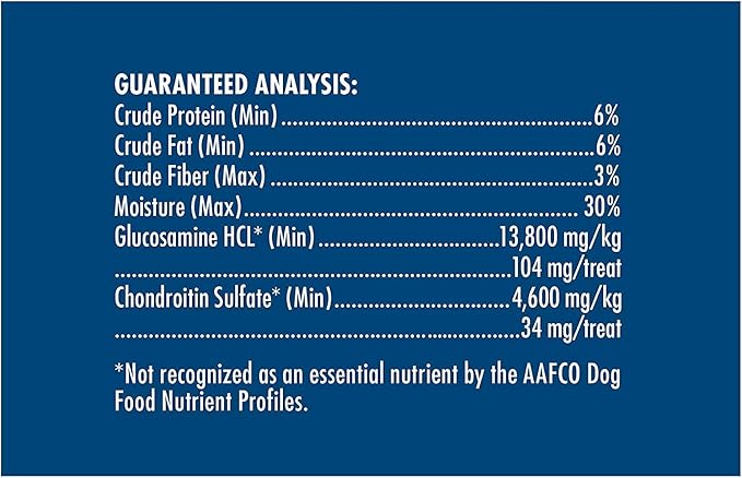 • Zuke's hip action hip & joint dog treats feature 300mg of glucosamine and 50mg of chondroitin per tender, tasty treat