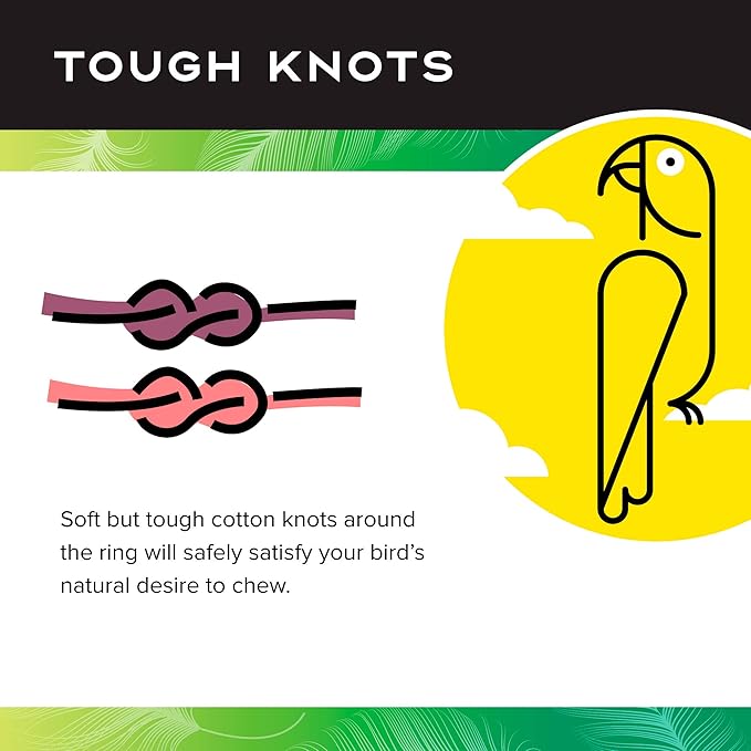 • TOUGH KNOTS: Soft but tough cotton knots around the ring will safely satisfy your bird's natural desire to chew