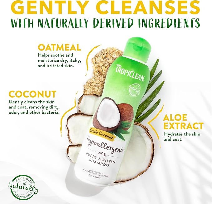 TropiClean Gentle Puppy Shampoo, Dog Shampoo for Allergies & Sensitive Skin, Made in USA, Gentle Coconut Scent, Safe for Cats & Kittens, 20oz