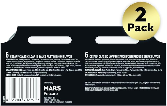 • Peel Away Seals: Cesar Classic Loafs gourmet soft dog food is served in convenient trays with easy, peel away seals