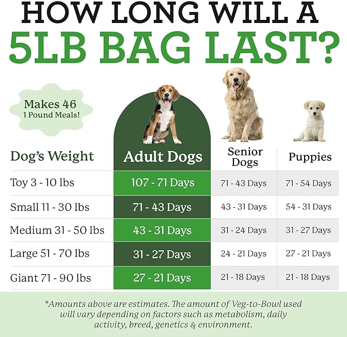 • 5 pound bag makes 46, one pound finished meals; High in Calcium and other minerals; Grain-Free, Non-GMO Certified & Made in the USA; Holistic Formula with NO Synthetic Ingredients, NO Chemicals, NO Preservatives, No Dyes
