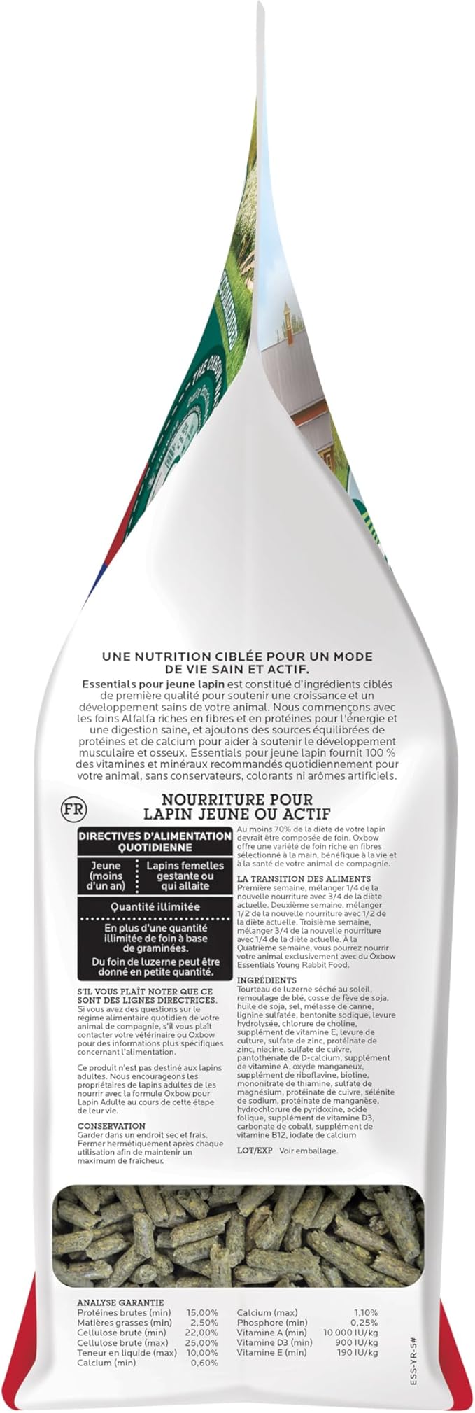 Oxbow Essentials Rabbit Food, Young Rabbit, Made with Oxbow Alfalfa Hay, Pet Food Pellets with Vitamins & Minerals, Small Animal Pet Products, Bunny Supplies, Made in USA, High Fiber, 5 lb. bag