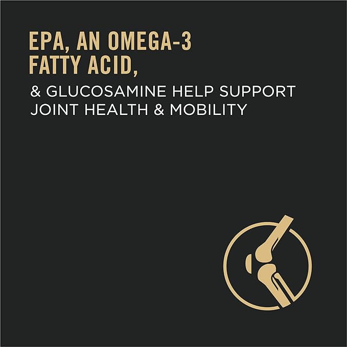 • EPA, an omega-3 fatty acid, and glucosamine help support his joint health and mobility