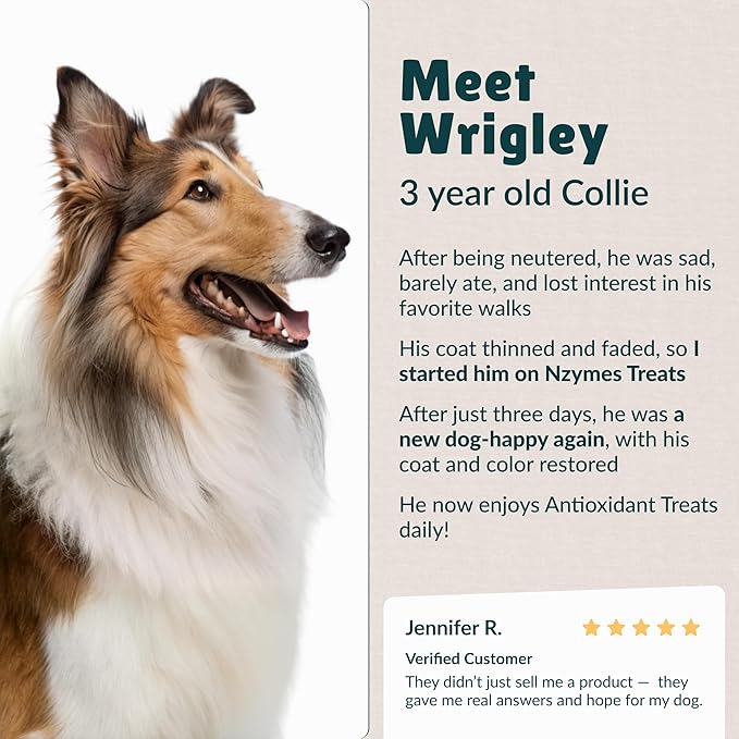 Nzymes® Antioxidant Treats - for Dogs Joints, HIPS, Paralysis, Skin, Coat, Hair Loss, Aging, Digestion, Neurological, Seizures - 60 Treats - Made in The USA