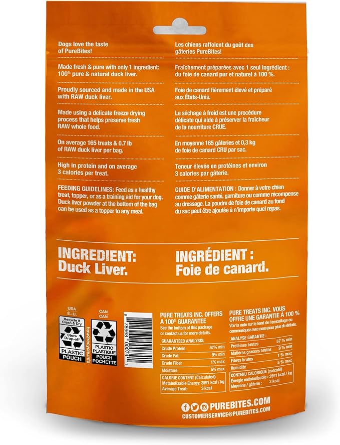 - Go ahead, look at our ingredients; made with only 1 simple human grade ingredient: 100% pure duck liver; proudly sourced and freeze dried RAW in the USA; a great high-value treat, topper, or training aid for your dog