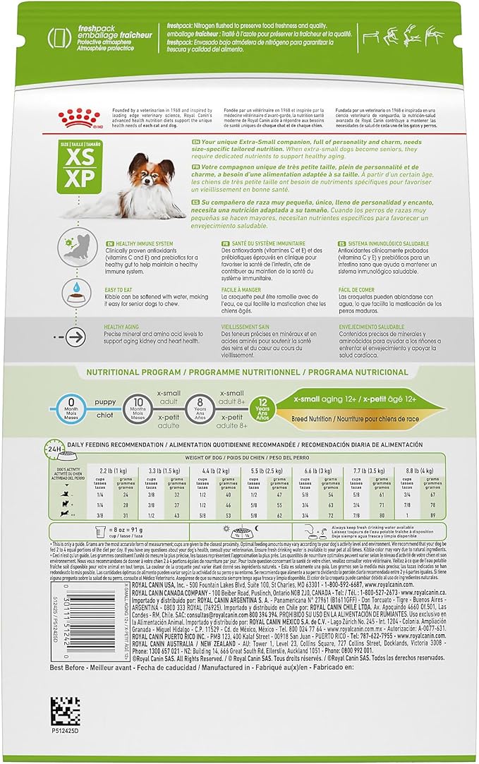 • X-SMALL BREED DOG FOOD: Royal Canin X-Small Aging 12+ Dry Dog Food is precise nutrition specifically made for toy and miniature breed senior dogs over 12 years old that weigh up to 8 lb