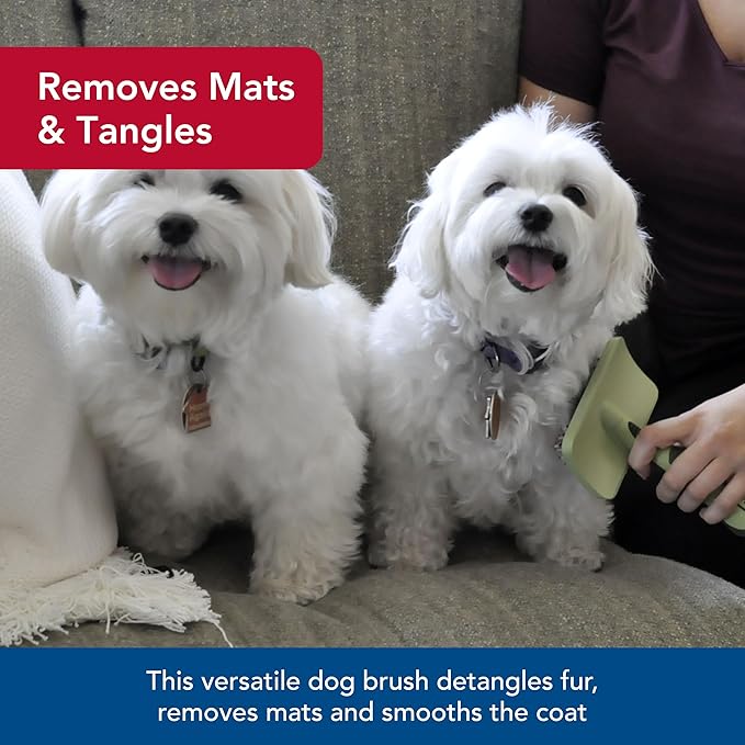 • Gentle Dog Grooming Kit: This versatile dog brush detangles fur, removes mats and smooths the coat