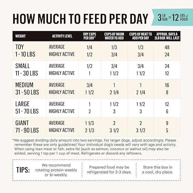 - ADD YOUR OWN PROTEIN: This recipe is designed to be mixed with meat or fish, based on your dog’s protein restrictions or preference.