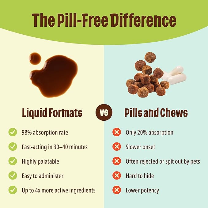 • Pill-Free administration process allows for 98% absorption rate vs. 20% with pills and chews. In other words, LICKS is up to 10x's more effective than pills or chews!