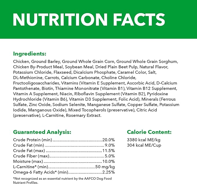 • Healthy Weight: Contains premium nutrition with L-carnitine & less fat to support Healthy Weight in adult dogs
