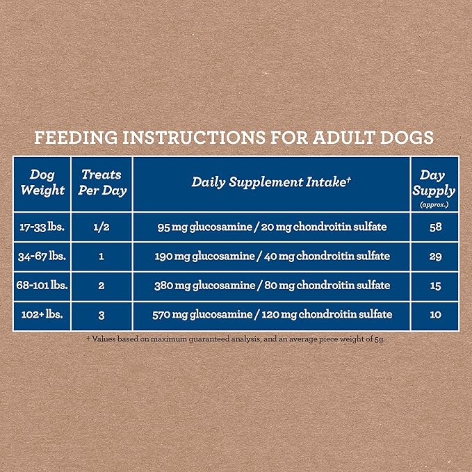 • Soft-textured treats with a daily measured dose of supplementation for your dog’s weight