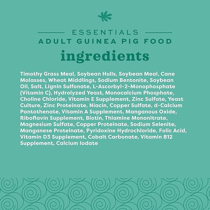 - TOP INGREDIENTS FOR DIGESTIVE SUPPORT: Crafted with high-fiber Timothy hay, this premium guinea pig food supports healthy digestion while promoting natural foraging behaviors; It delivers daily enrichment and gut health support in every bite