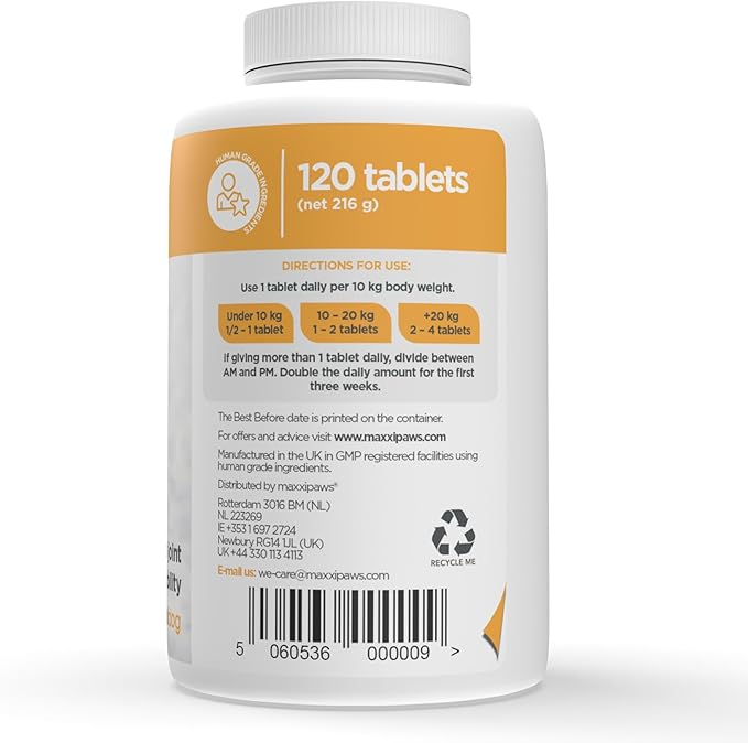 maxxipaws - maxxiflex+ Hip & Joint Supplement for Dogs with Glucosamine, Chondroitin, MSM & Collagen | Mobility, Flexibility & Discomfort Support | Senior, Adult & All Breeds | 120 Tablets