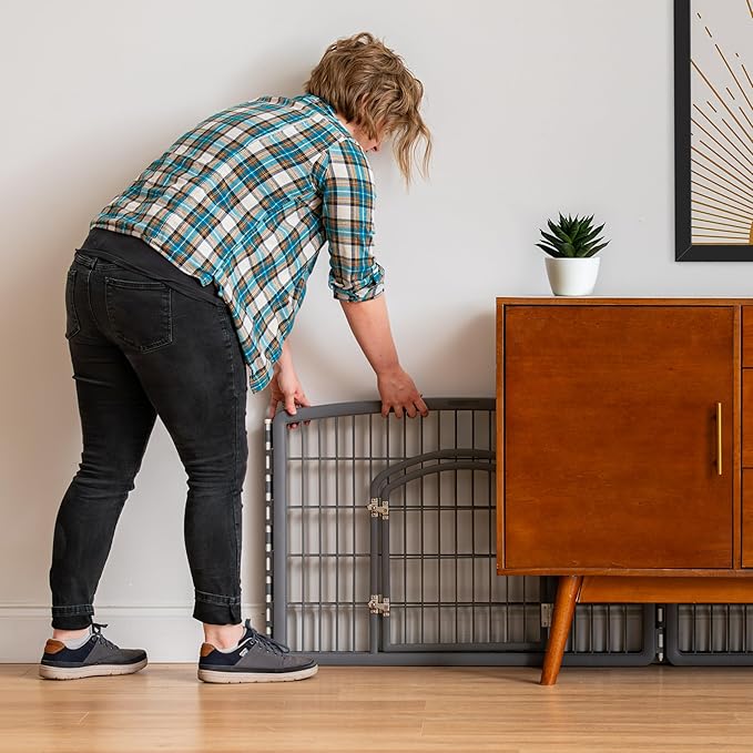 - EASY ENTRY - Save yourself from having to hoist up your pet every time you want to take them out of or put them into the playpen thanks to the door that's built into the front panel and perfectly sized to your extra small to medium sized pet such as puppies, cats, chihuahuas, dachshunds, pugs, and other family pets.