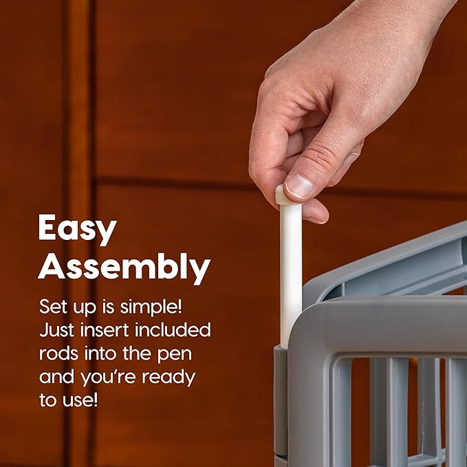 - EASY ASSEMBLY - Built with convenience in mind, the pet playpen can be put together easily thanks to the full length connecting rods. It comes with 3 non-door panels and 1 panel with a door, each panel featuring rubber feet to protect flooring and keep the pet pen in place.
