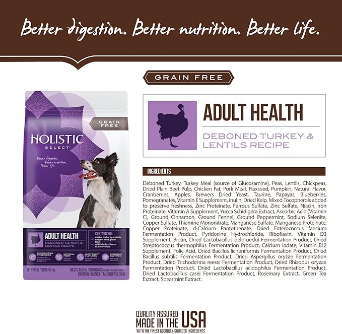 Holistic Select Natural Grain Free Dry Dog Food, Deboned Turkey & Lentils Recipe, 4-Pound Bag