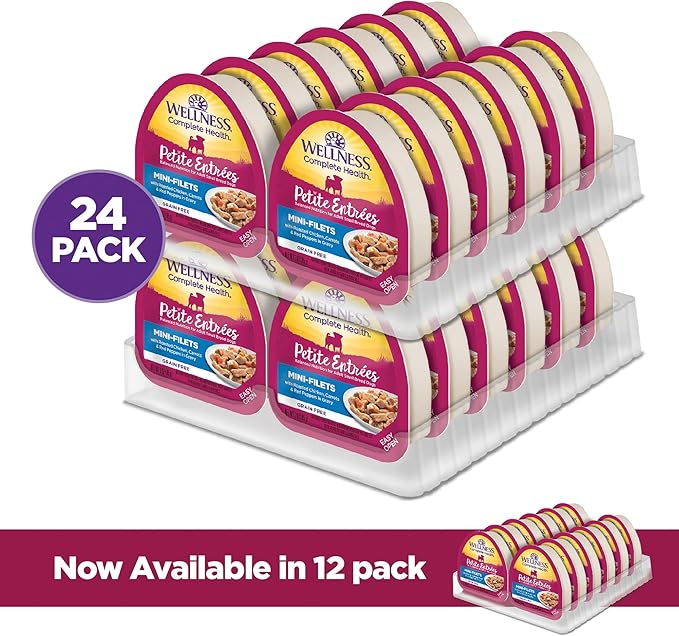 Wellness Natural Pet Food Petite Entrees Mini Fillets Grain Free Natural Wet Small Breed Dog Food, Roasted Chicken, Carrots & Red Peppers, 3-Ounce Cup (Pack of 24)