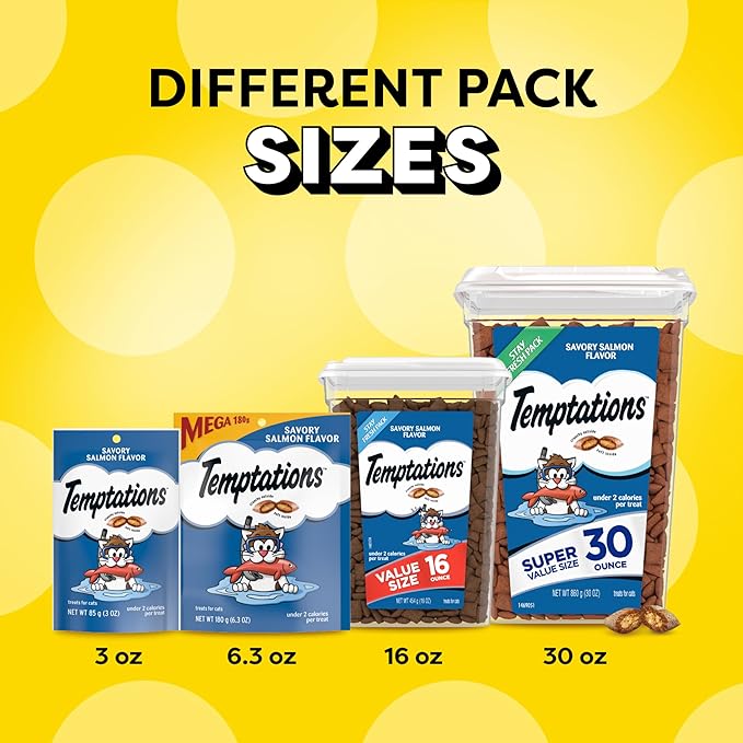 Temptations Classic Crunchy and Soft Cat Treats, Savory Salmon Flavor, 16 oz. Tub