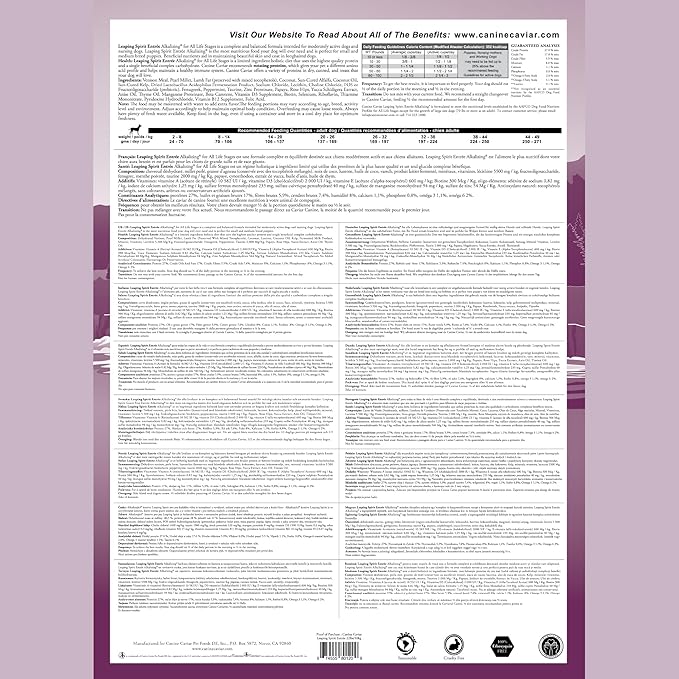 Canine Caviar - Leaping Spirit: Venison & Pearl Millet Alkaline Dry Dog Food, Limited Ingredients, Gluten-Free, Based on Science & Research, Veterinary Alternative Diet (22 Pound Bag)