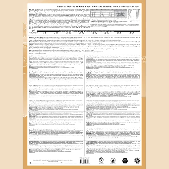 Canine Caviar - Free Spirit: Chicken & Pearl Millet Alkaline Dry Dog Food, Limited Ingredients, Gluten-Free, Based on Science & Research, Veterinary Alternative Diet (22 Pound Bag)