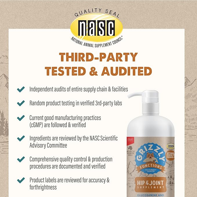 - COMMITTED TO QUALITY. Our products reflect our dedication to sustainability, evidence-based research, and the highest standards of quality from boat to bottle. Grizzly is a certified member of the National Animal Supplement Council.