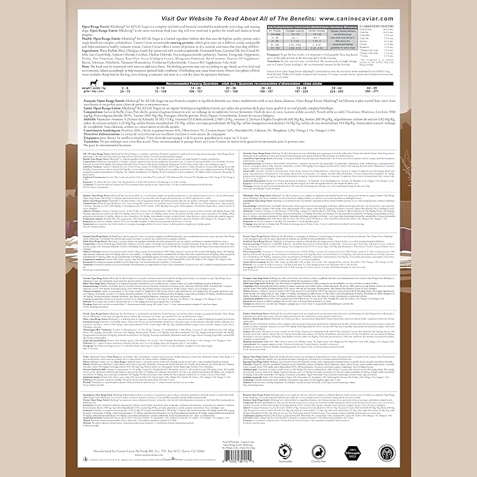 Canine Caviar - Open Range: Water Buffalo & Chickpea Alkaline Dry Dog Food, Limited Ingredients, Gluten-Free, Based on Science & Research, Veterinary Alternative Diet (22 Pound Bag)