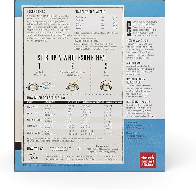 The Honest Kitchen Dehydrated Limited Ingredient Turkey Dog Food, 4 lb Box