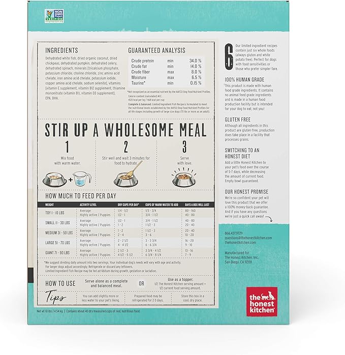 The Honest Kitchen Dehydrated Limited Ingredient Dog Food Complete Meal or Dog Food Topper Fish 10 lb (makes 40 lbs)