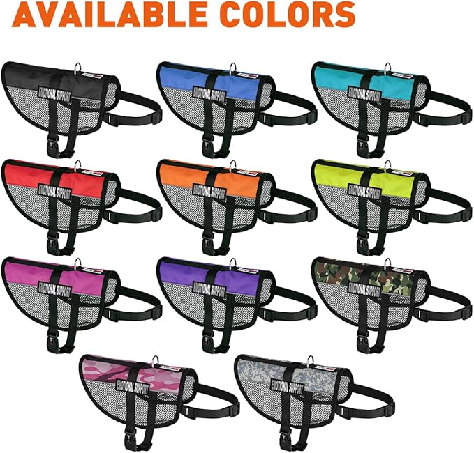 - Removable/Interchangeable EMOTIONAL SUPPORT patches included for both sides of the vest