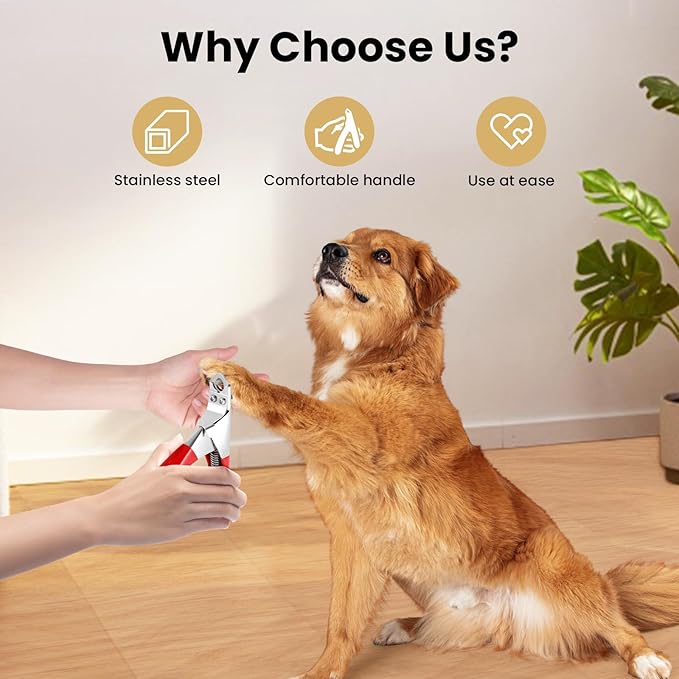 - High-Quality Stainless Steel Blades: The dog nail trimmers are made of high-density stainless steel, which is long-lasting and can accurately and easily cut pet nails.The sturdy spring enables effortless clipping of thick nails with just a gentle snip, making home grooming for pets effortless