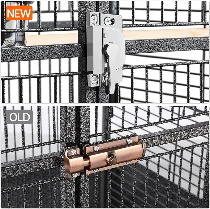 - Protected With Locks: The button lock on the front door can keep your small genius safely in the cage when unattended, while the lock design is straightforward for pet parents. The feeder doors are also secured with locking mechanisms