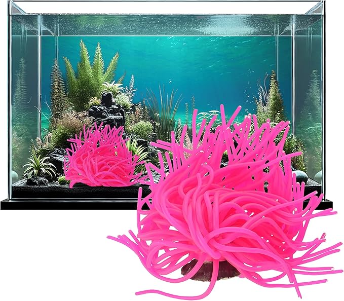 - EASY APPLICATION WITH MINIMAL MAINTENANCE NEEDED. Our package includes a pink anemone glow fish tank decorations. To clean the pink fish tank decor, just rinse under hot water and place it in the aquarium. Use a plastic bristle for cleaning.