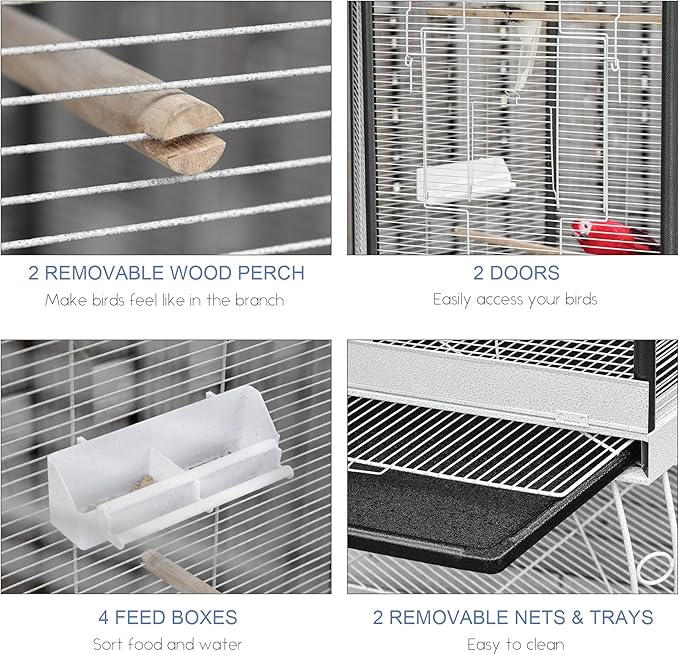 - Portable Design: A metal stand with 6 easy-rolling casters lets you enjoy your bird anywhere you go.