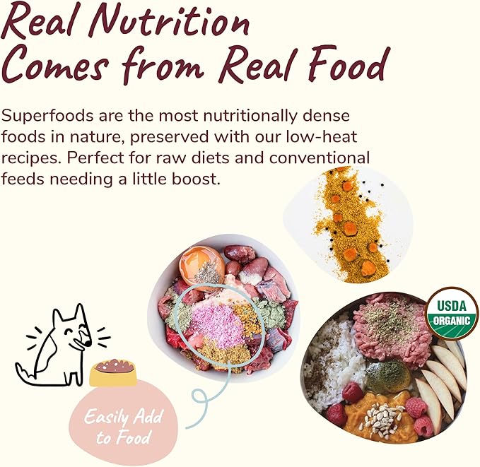 - VERSATILE: Whether your four-legged friend is on a raw or conventional diet, serving our dog supplement is as easy as sprinkling it into their daily meal. Perfect for either dry or wet food, you can adjust the dose as needed.