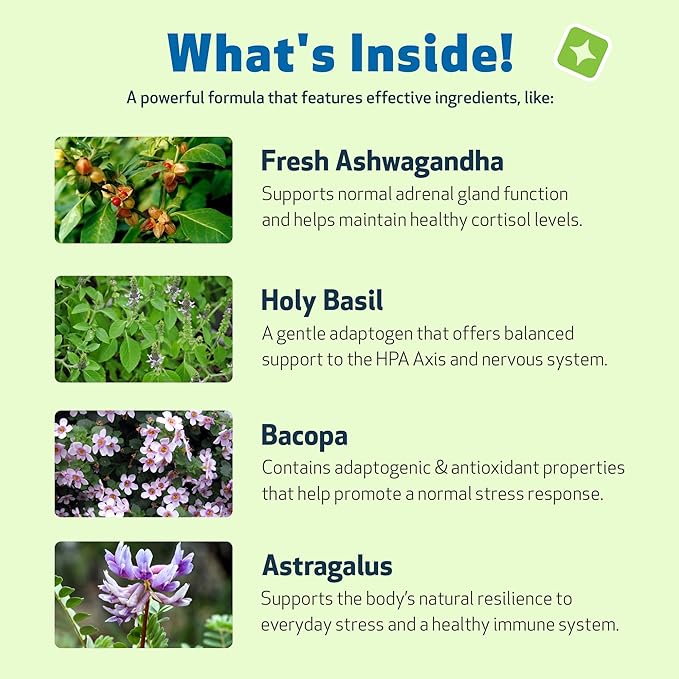- 🌱 HOLISTIC HERBAL BLEND – Includes Ashwagandha, Astragalus, Holy Basil, and Bacopa—adaptogenic herbs traditionally valued for vitality, balance, and resilience.