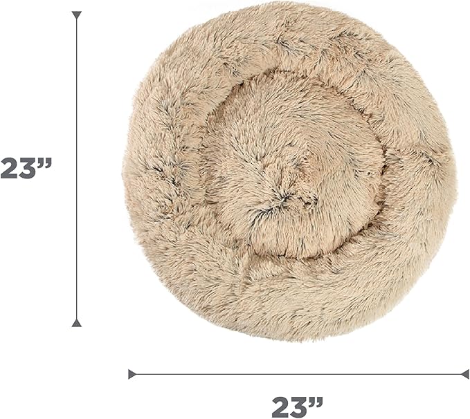 Best Friends by Sheri Original Calming Donut Dog and Cat Bed, Shag Faux Fur, Taupe, (23in x 23in) - Anxiety Relief for Pets Up to 25 lbs