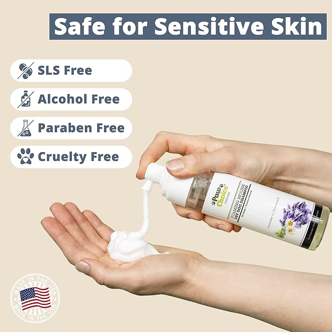 Paw Choice Dry Shampoo for Dogs - Waterless No-Rinse Foam for Odor Removal, Cleaning, Conditioning - Hypoallergenic, Natural - Safe for Sensitive Skin - Made in USA - Lavender Chamomile Scent