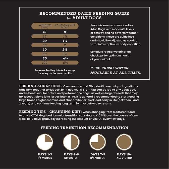 - PROPRIETARY VPRO BLEND: Every VICTOR dry dog food formula begins with our exclusive mix of supplements, vitamins and minerals that have been designed to help maximize the genetic potential of every dog, regardless of breed, age, or activity level