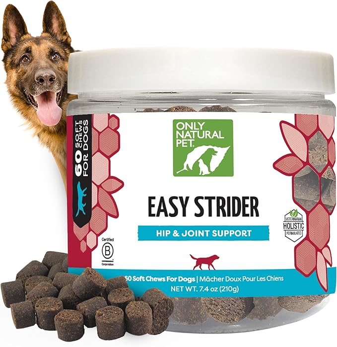 Only Natural Pet Easy Strider Hip and Joint Supplement, All Natural Holistic Glucosamine & Turmeric Formula for Dogs - Made in USA, 60 Soft Chews