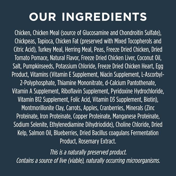 - NATURAL INGREDIENTS: This grain free dog food uses the pure, real nutrition of raw meat and whole food ingredients. This dry dog food contains no grain, potato, corn, wheat, soy, by-product meals, artificial colors, or preservatives.