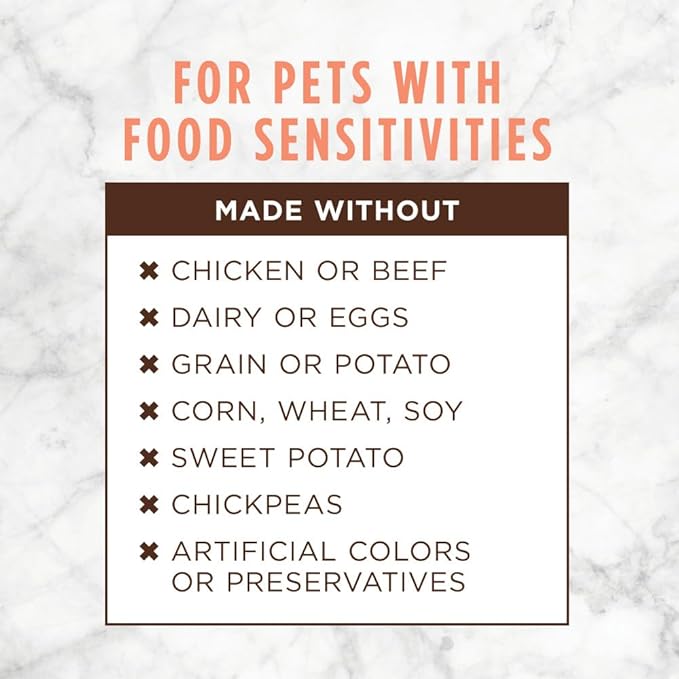 - GRAIN FREE DOG FOOD FOR DOGS WITH SENSITIVITIES: Instinct Limited Ingredient dog food is made with 1 protein & 1 vegetable. No grain, dairy, eggs, chicken, beef, fish, sweet potato, potato, chickpeas, corn, wheat, soy, artificial colors or preservatives.