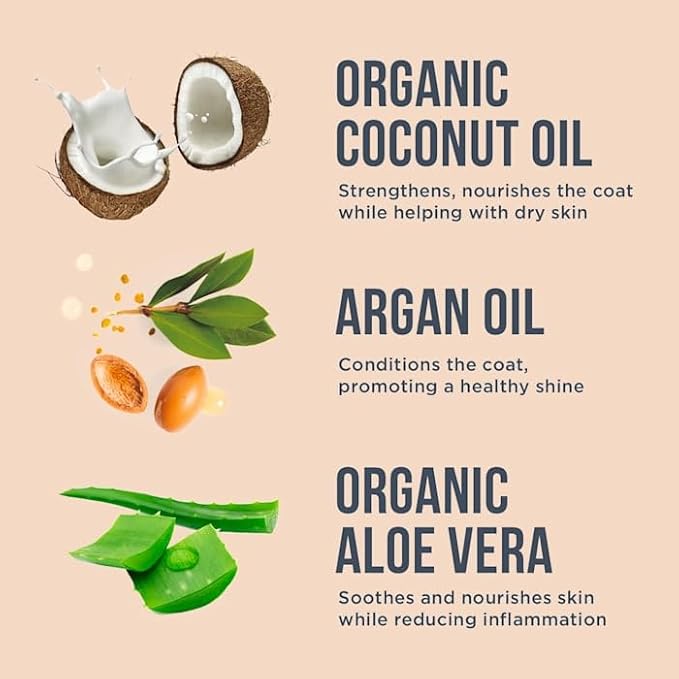 - STRICTLY ORGANIC: Source from reputable, certified organic suppliers to make sure we do right by all animals. Organic Coconut, Sesame Seed & Argan oil formula improves coat + skin & Anti-itch