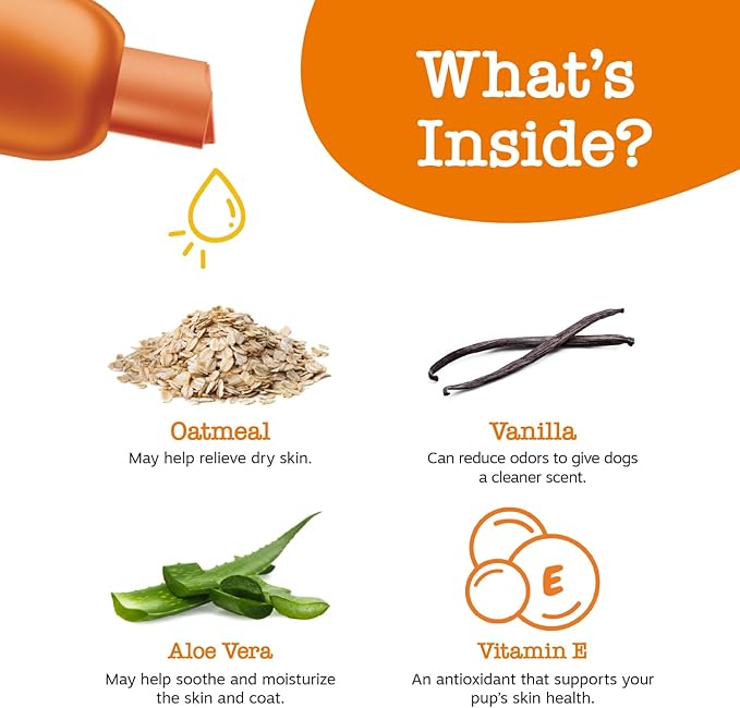 Dog Shampoo with Oatmeal & Aloe Vera - Grooming Pet Wash for Itchy & Sensitive Skin + Dandruff & Coat - Gentle Anti Itch Formula - Vanilla Bean Scent - 16 OZ