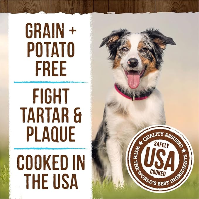 - Crafted with only 10 ingredients, your dog will enjoy these potato free, chicken free, gluten free, and grain free dog treats. Merrick dog treats for medium dogs are cooked in the USA