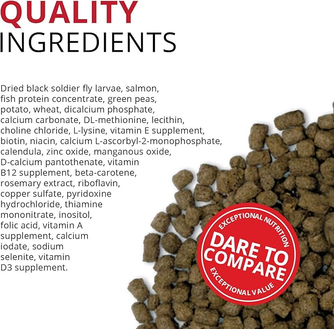 • Tropical fish food that contains up to 40%, nutrient-rich Black Soldier Fly Larvae, the first ingredient