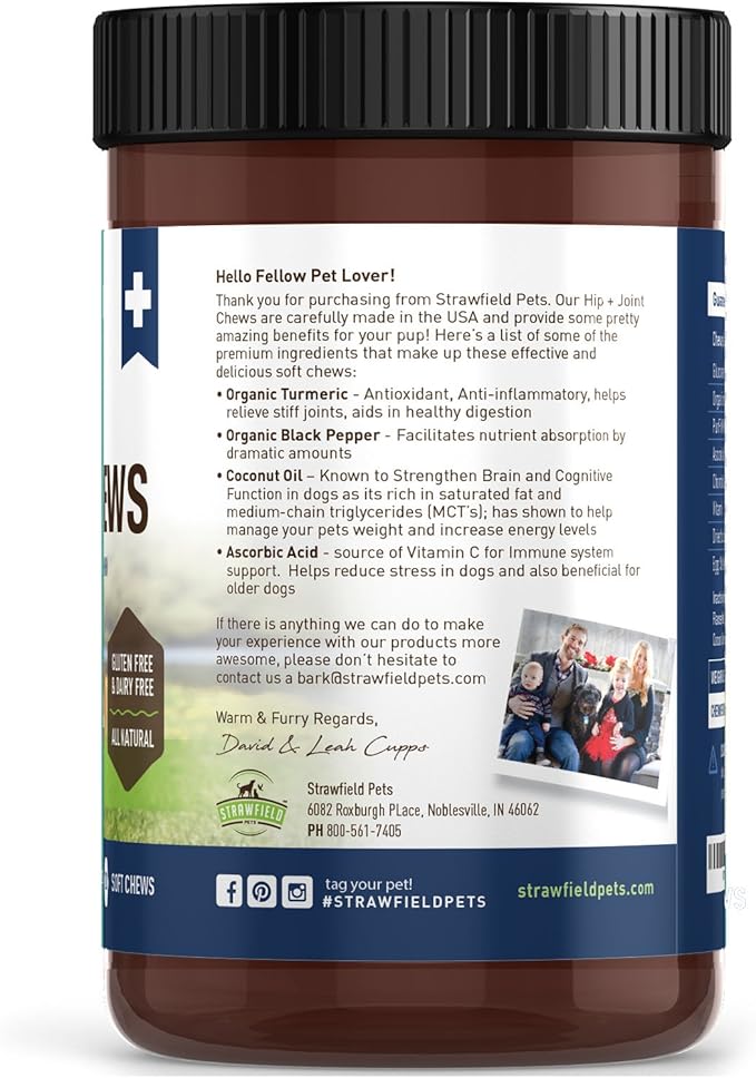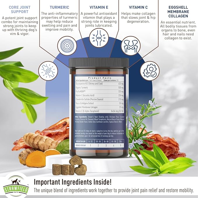 Strawfield Pets Hip + Joint Chews for Dogs Advanced Dog Joint Supplement with Glucosamine Tasty Healthy Mobility Treats Bacon Flavor 120 Count