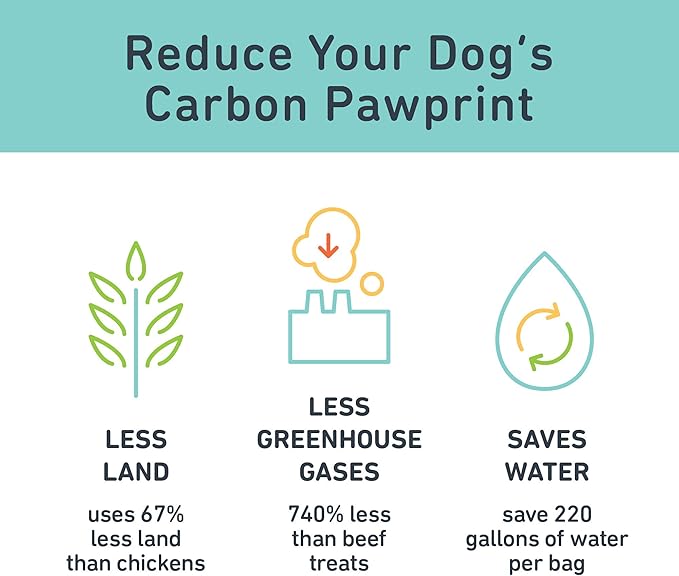 - REDUCING THE CARBON PAWPRINT - We make sustainability a priority! Insect protein uses less water & almost no greenhouse gases. Our treats save 200 gallons of water PER BAG compared to traditional products.