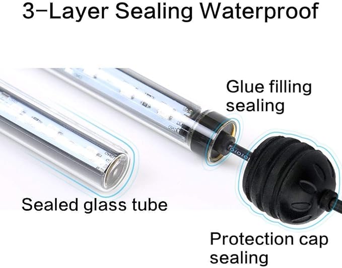 - 3-Layer Sealing Waterproof, IP 68 Waterproof--Our submersible fish tank lights could be submerged entirely under the water or take it out of the water, meeting America's highest waterproof level. (Power Adapter, Switch and Remote are Non-waterproof).